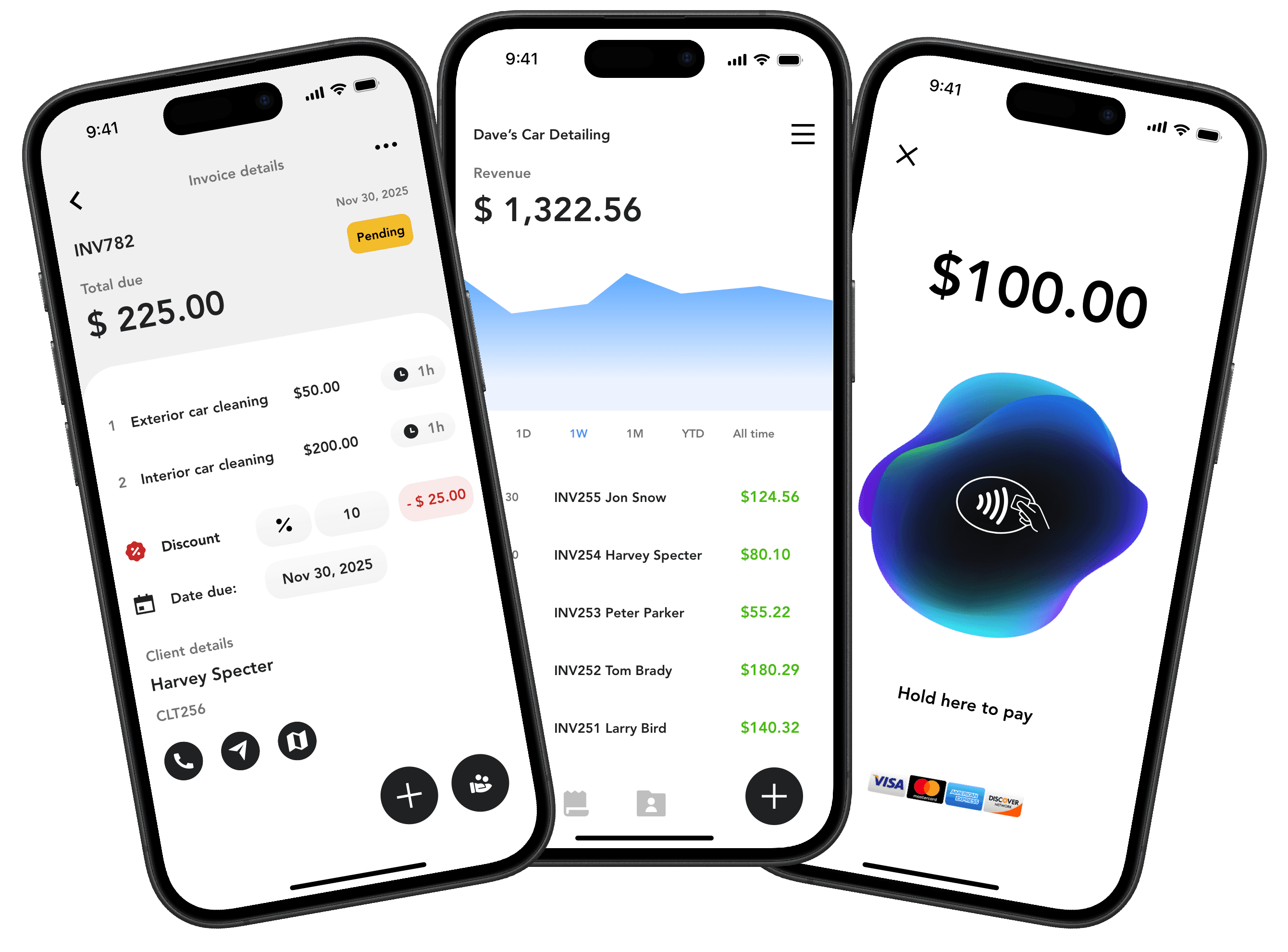 via cash, payment link, or tap-to-pay.